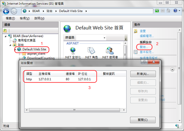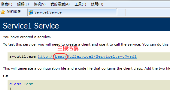 網友問了個問題:WCF 建立時,服務參考的網址是顯示主機名稱,但他想用 IP 取代主機名稱,這該怎麼做呢?其實還挺簡單的,在 IIS 設定一下就行了,下面用對照的方式來看: 設定前: 設定後: 至於設定什麼呢……其實就是這個: